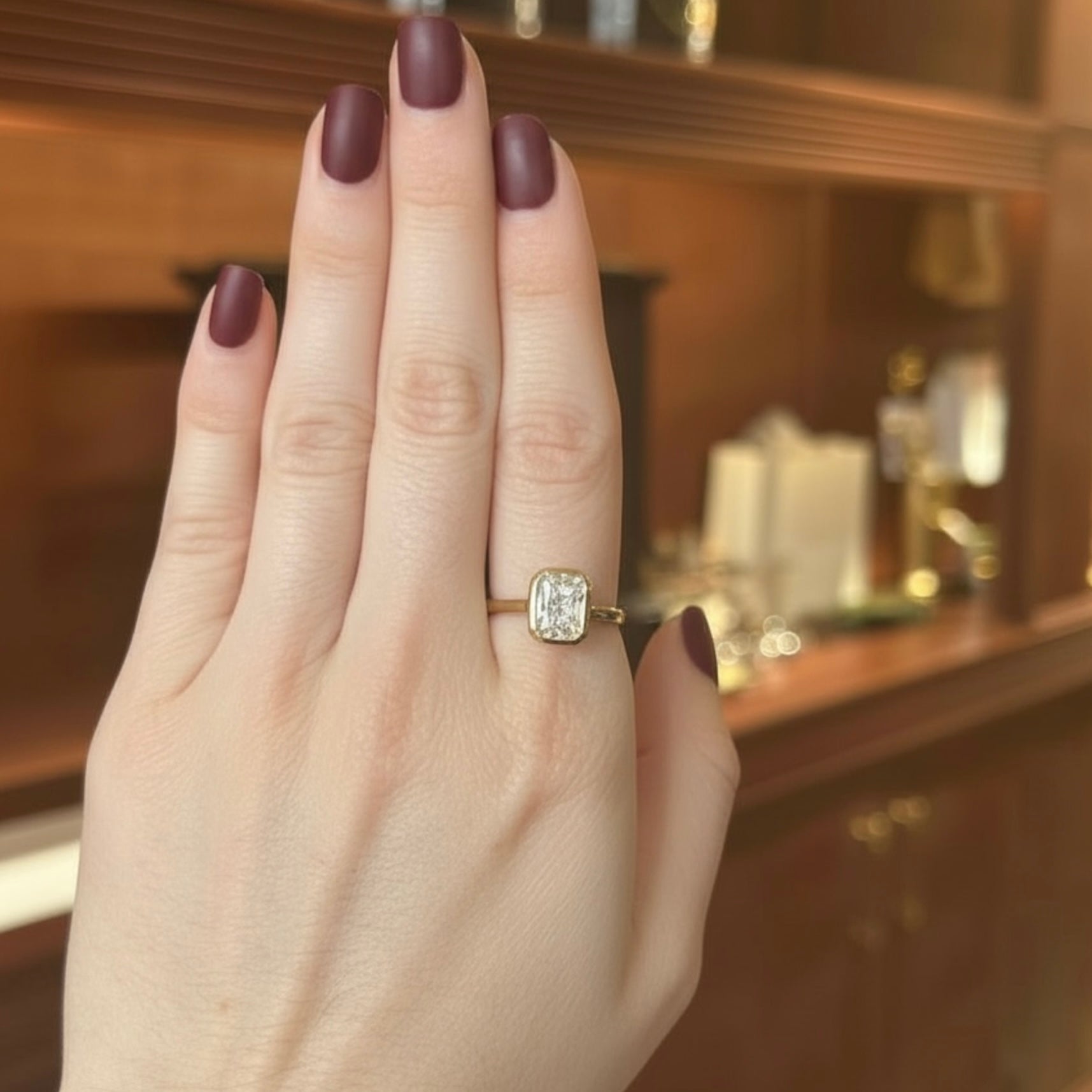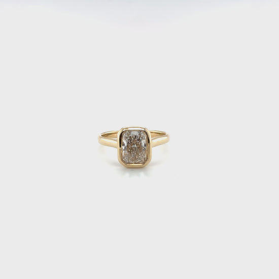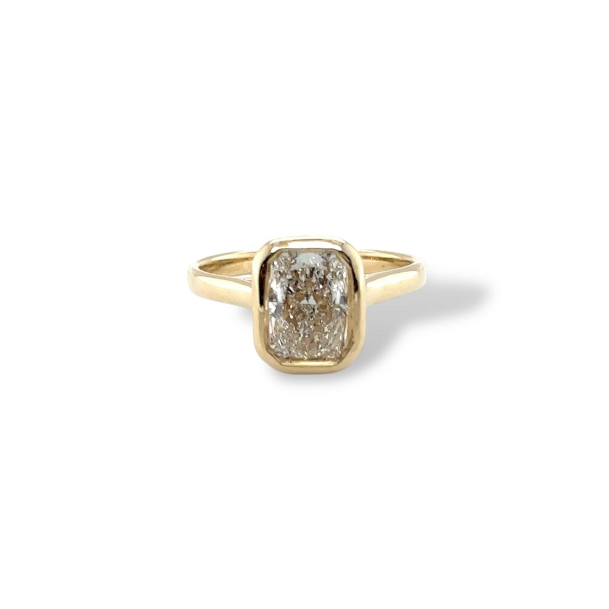 The Honeylight Ring presents a 3.01-carat modified brilliant diamond with a distinctive style-cut cornered rectangular form. This carefully proportioned gemstone balances geometric sophistication with superior light performance, delivering the brilliance and sparkle expected from premium diamond craftsmanship. The modified brilliant faceting pattern optimizes color dispersion and depth of shine, while the angular rectangular silhouette offers a modern, refined presence.