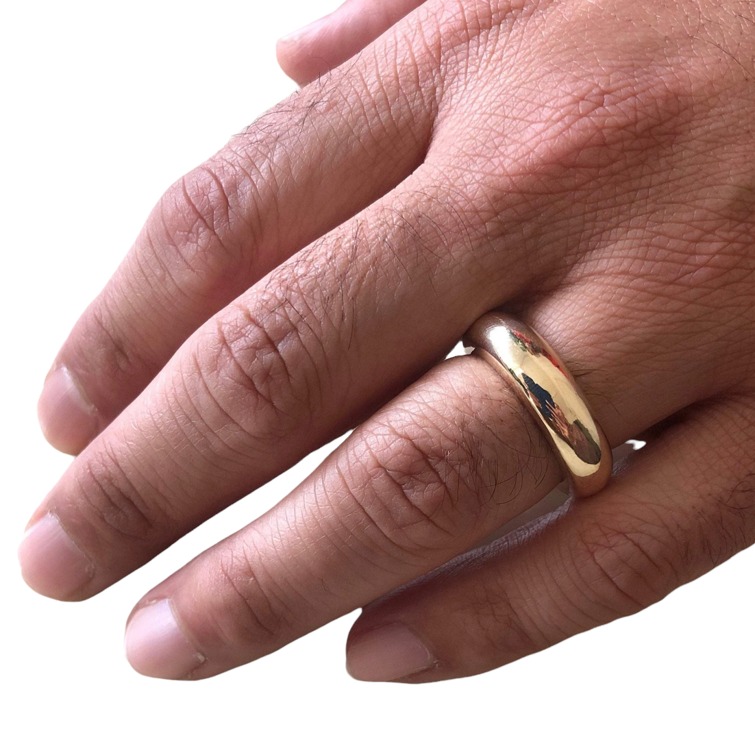 It has a beautiful high bubble dome and can be satin or high polish upon request. The width is nearly 7mm Gram weight ranges depending on sizing.