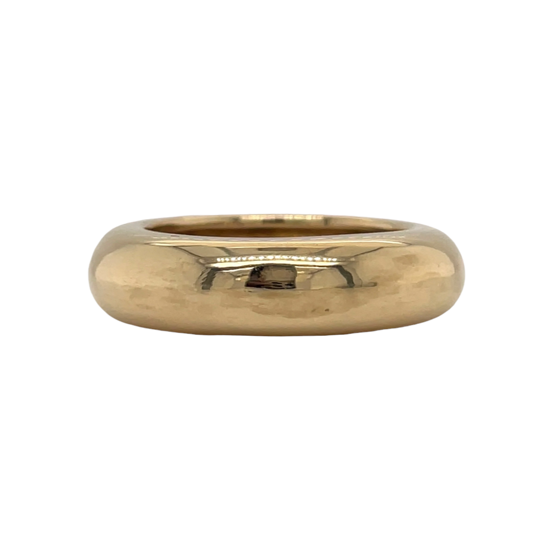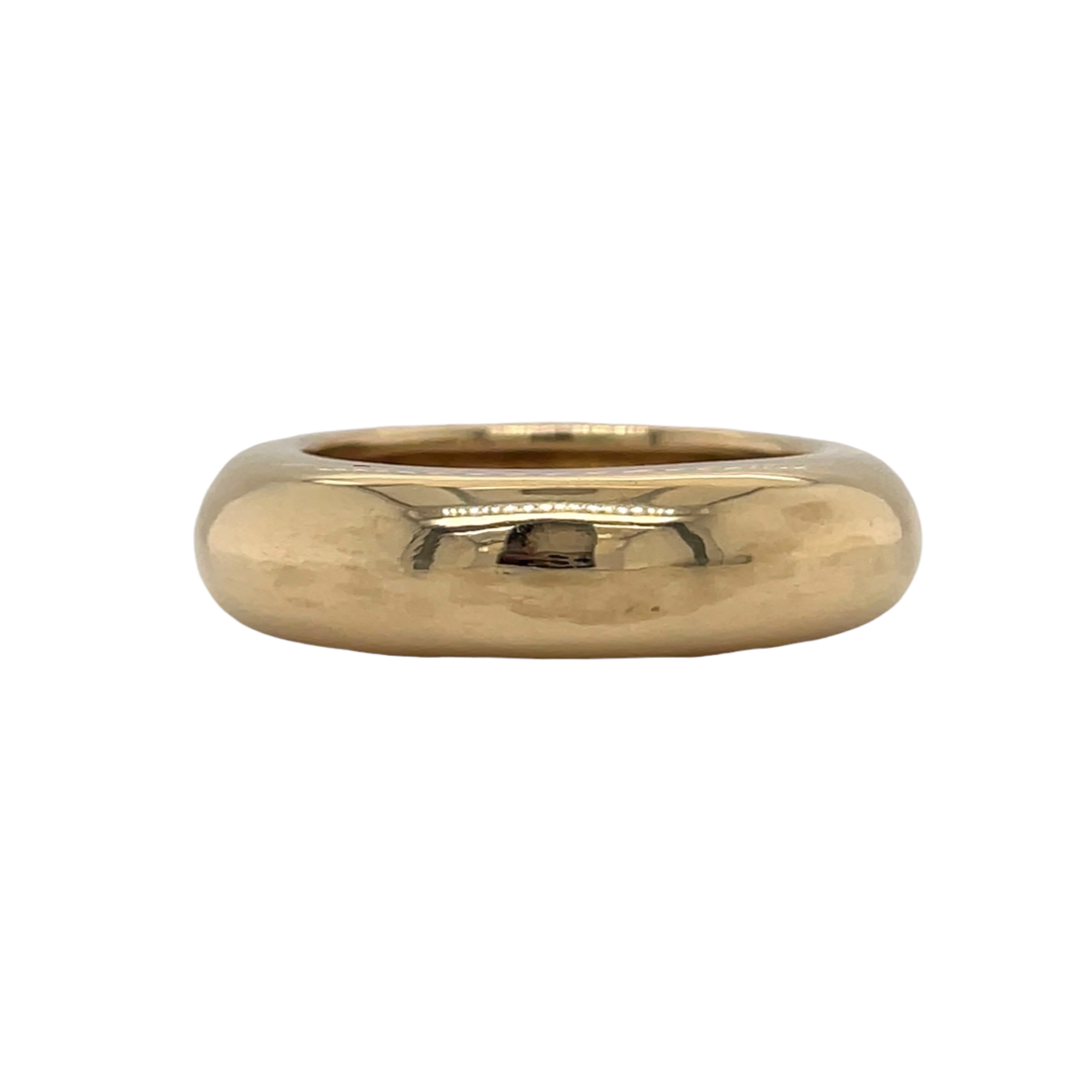 The "Fat Tire" band is a great chunky bubble ring. It is a classic unisex band that can be ordered in 14K Yellow, Rose or White gold.