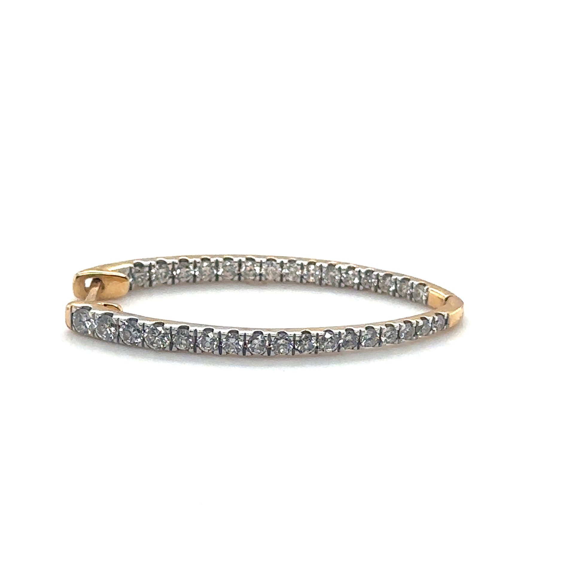 Crafted with meticulous attention to detail, these hoop earrings boast 1.48 carats of round brilliant diamonds, each meticulously selected for its exceptional quality. With a clarity grade of G/SI1, these diamonds radiate brilliance and fire, catching the light with every movement.