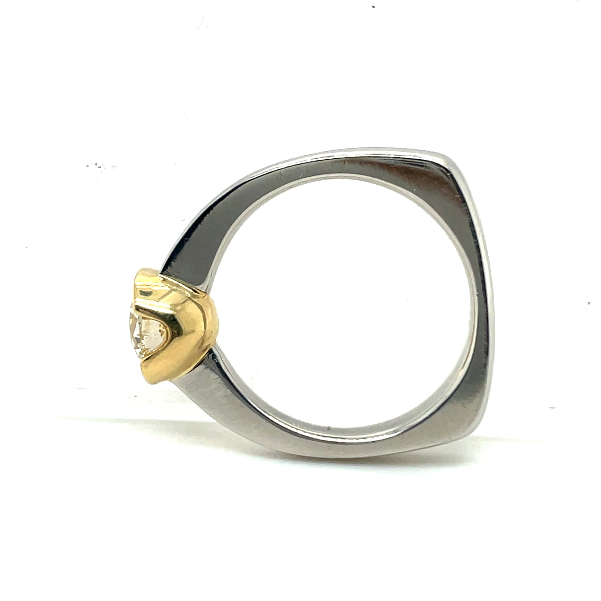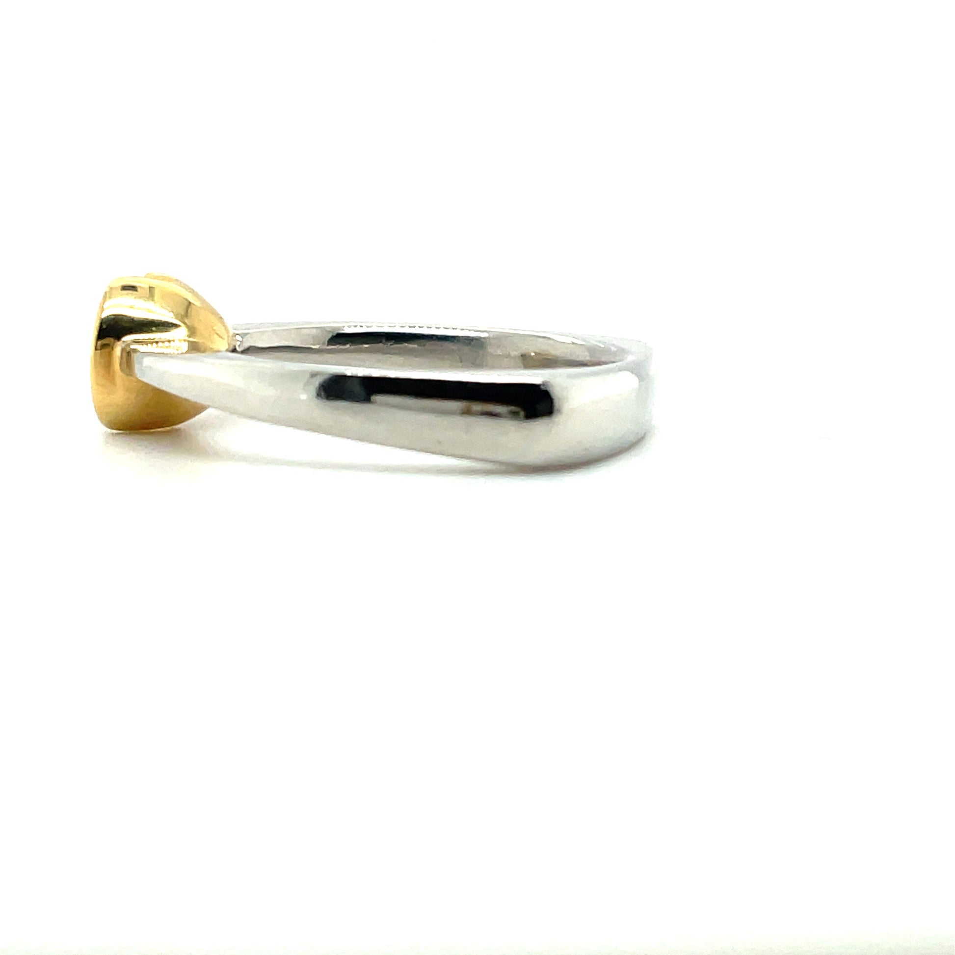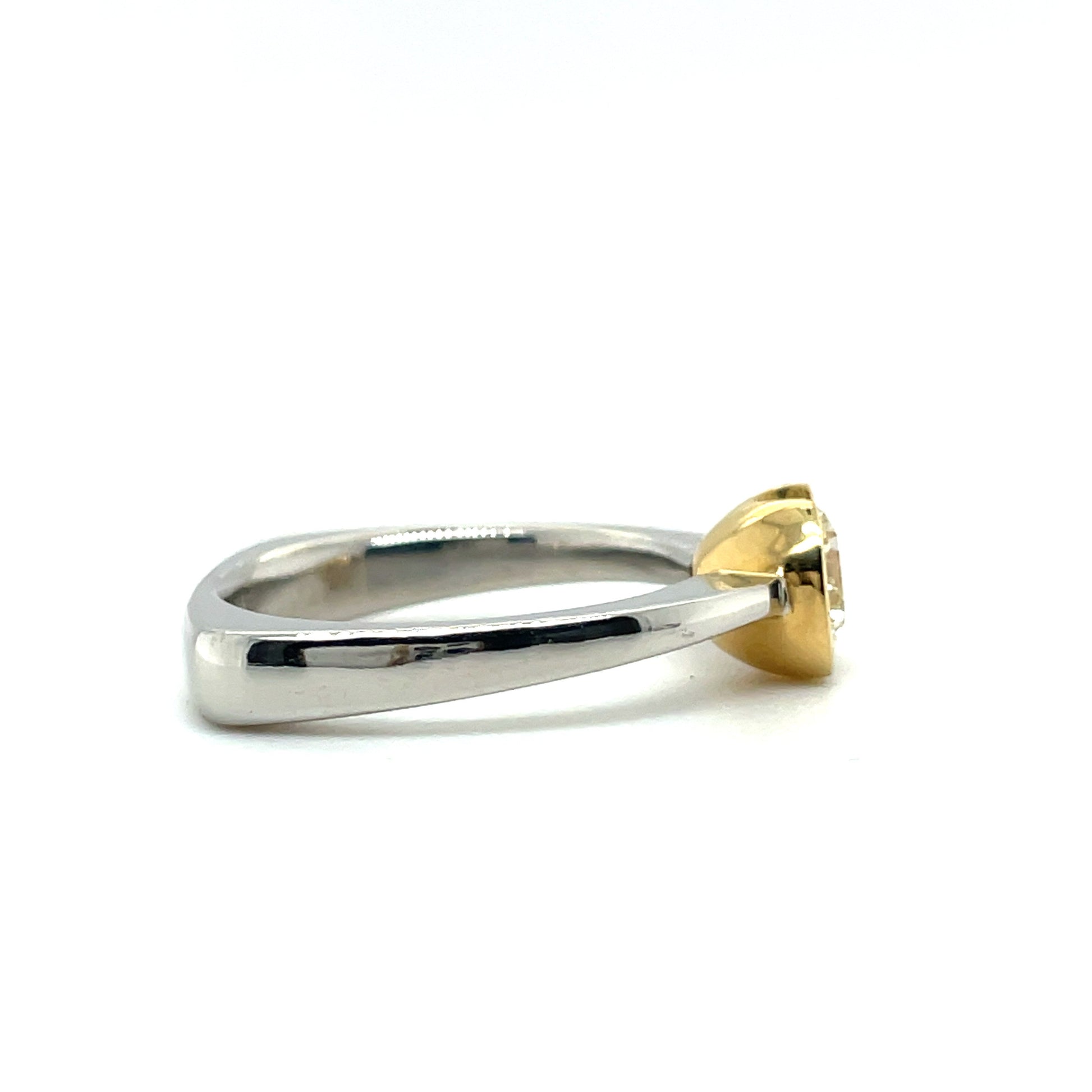 Two tone solitaire engagement ring, hand crafted in 18K yellow gold and platinum.